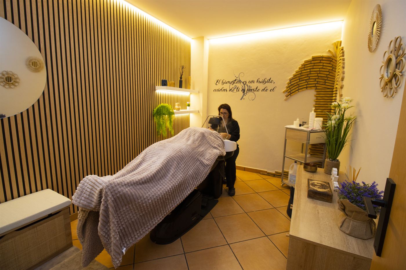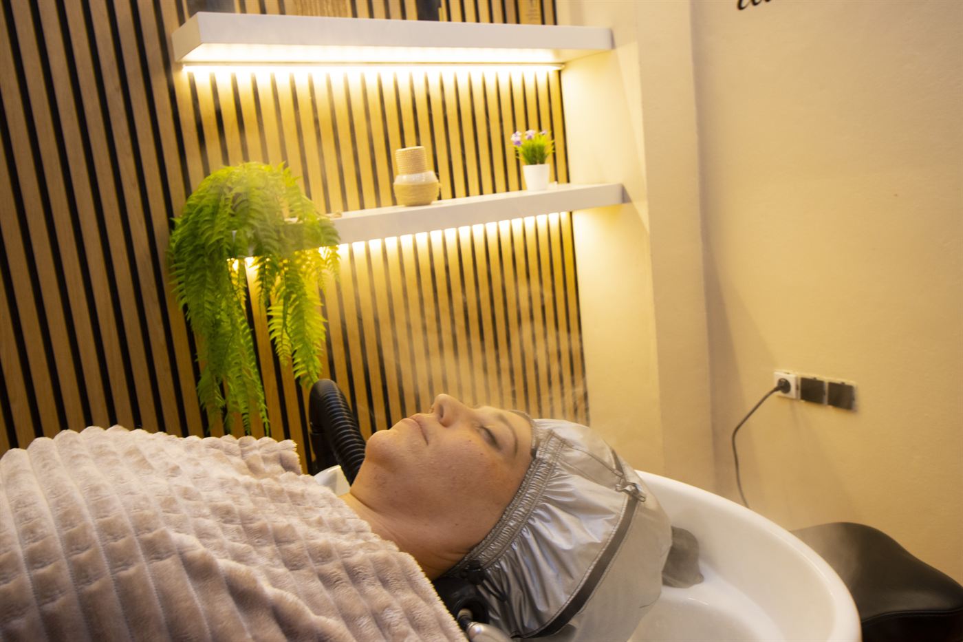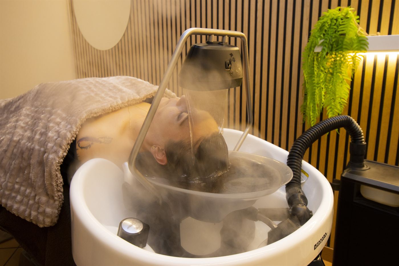 En nuestro spa privado, vivirás una experiencia inigualable de relajación gracias al exclusivo lavacabezas Yume. Su diseño ergonómico te permite disfrutar de una posición cómoda y relajada, sin tensiones en el cuello. ite disfrutar de una posición cómoda y relajada, sin tensiones en el cuello. Esta sensación de flotabilidad, combinada con nuestros tratamientos capilares, te llevará a un estado de bienestar total.